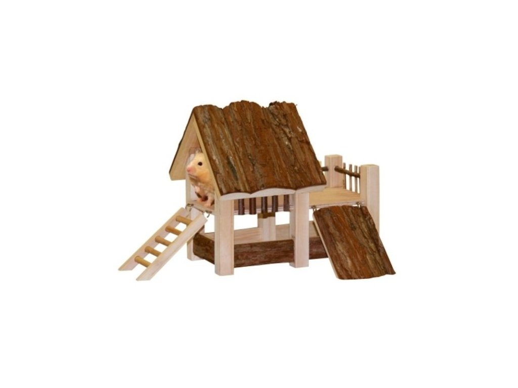 Hezká prolézačka a domek pro křečka, myš nebo jiného malého hlodavce. Dřevěný domek vyrobený ze dřeva.