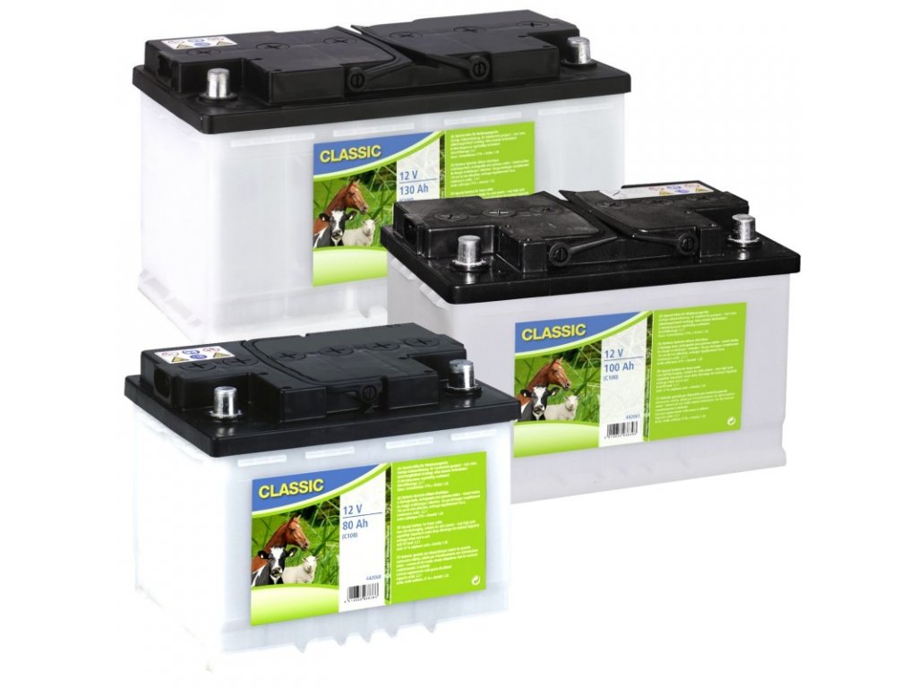Dobíjecí baterie - akumulátor slouží k napájení bateriových zdrojů pro elektrické ohradníky. Jedná se o speciální ohradníkový, extrémně pomalu se vybíjející akumulátor s napětím 12 V. Z důvodu bezpečnosti je akumulátor dodáván bez náplně.