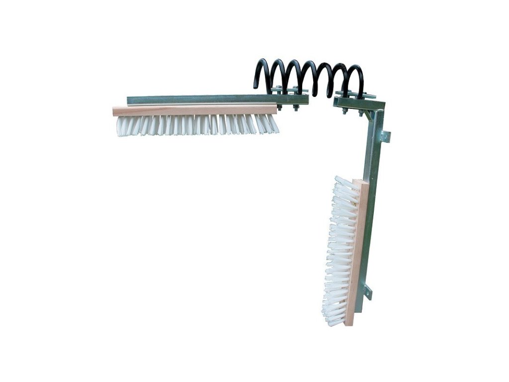 Silná konstrukce s pružinou. Kartáče 50 x 10 cm s dřevěnou základnou. Horizontální kartáč se může hýbat všemi směry.