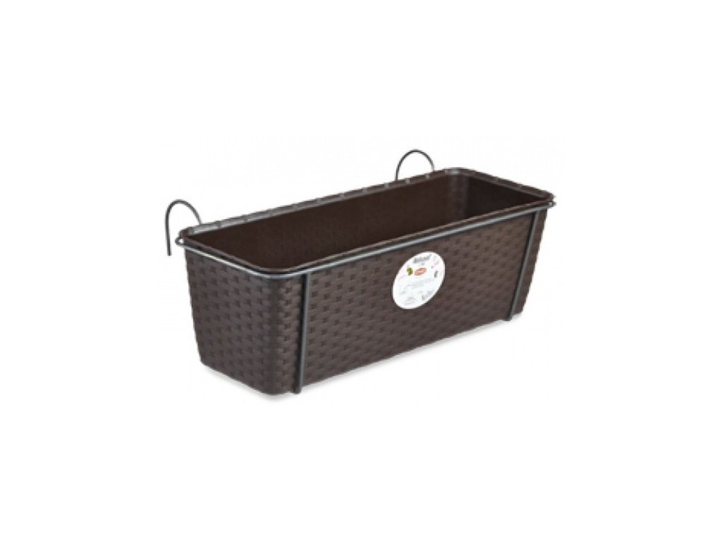 Kvalitní plastový samozavlažovací truhlík na muškáty a další oblíbené rostliny, s imitací ratanu. Samozavlažovací systém umožňuje závlahu rostlin bez neustálého zalévání.
