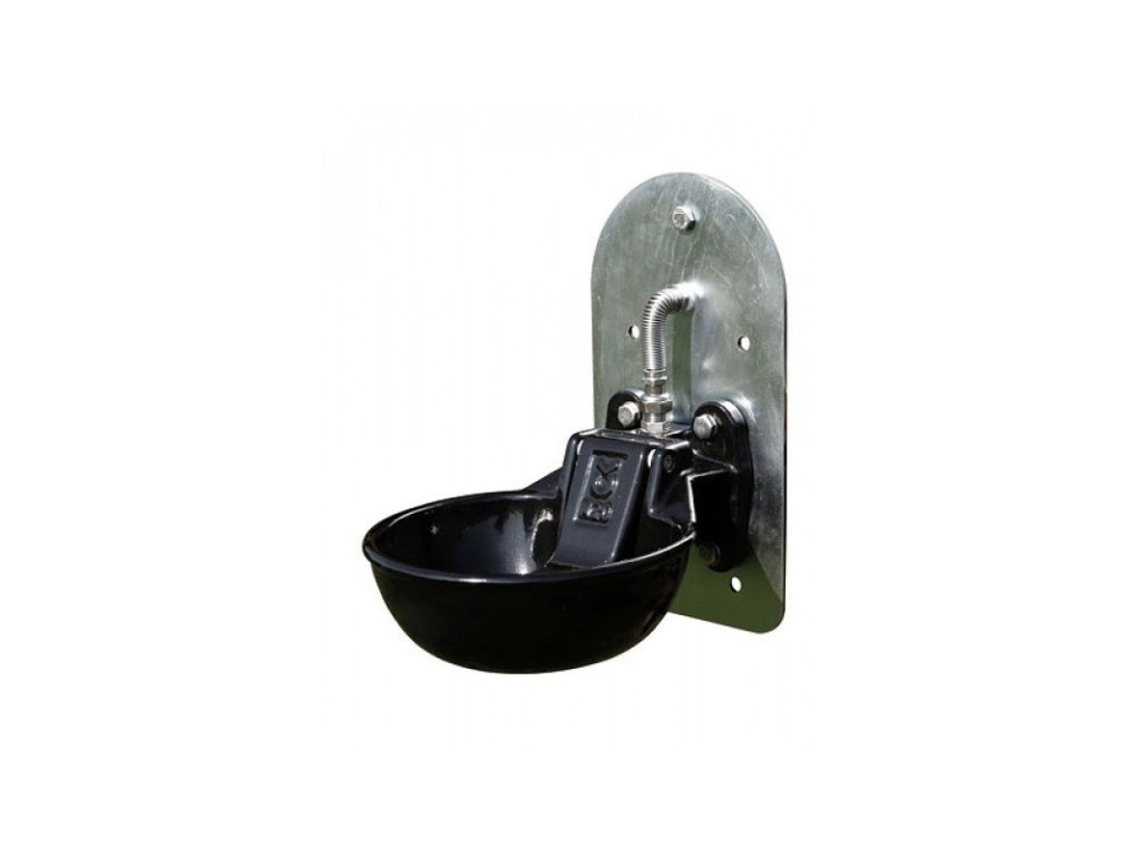 Kompletní misková, litinová napáječka s nízkotlakým ventilem, připevněním k pastevní cisterně a s těsněním příruby.