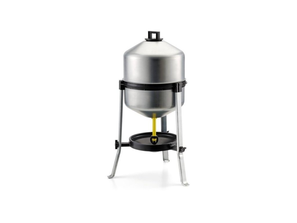 Stojanová barelová napáječka pro napájení kuřat, slepic a jiné drůbeže. Barelová napáječka se jednoduše sestaví a pomocí praktických úchytů lze snadno přenášet.
